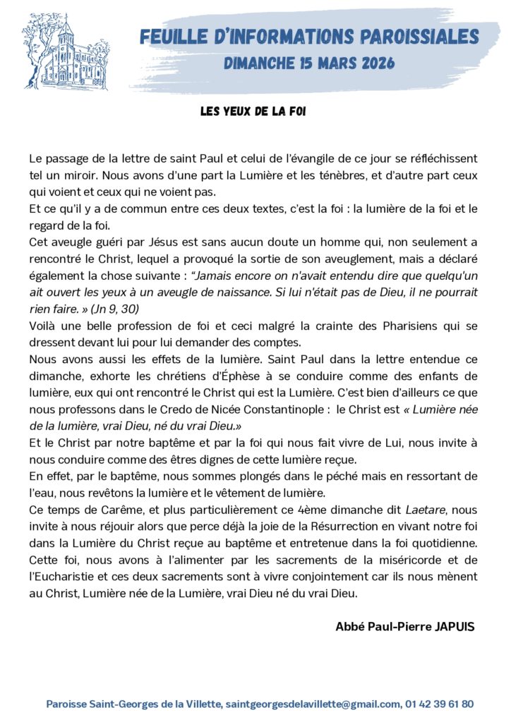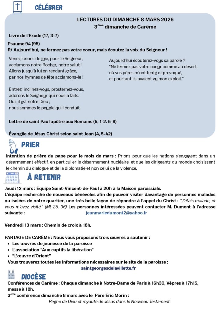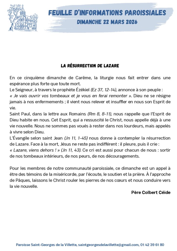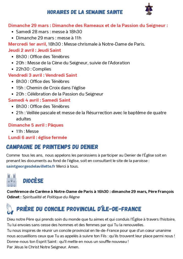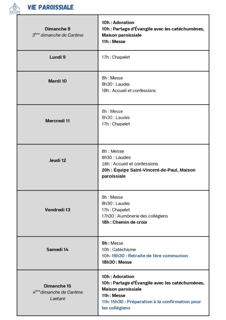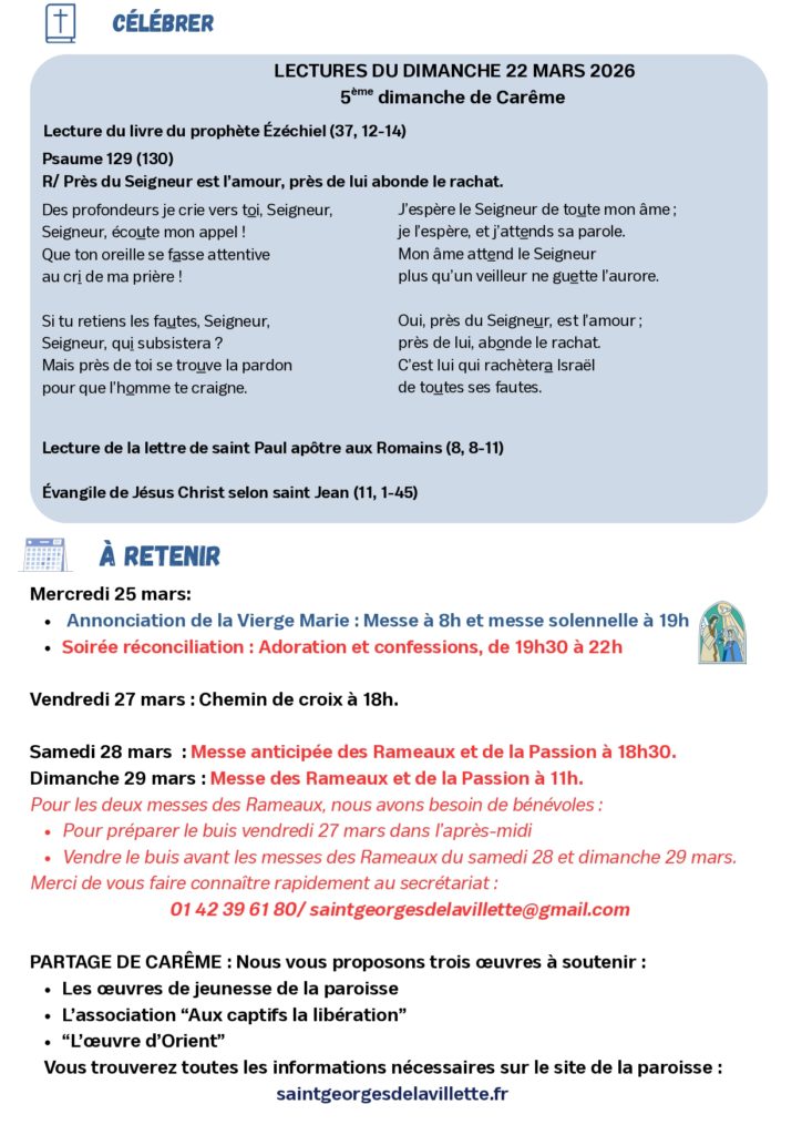- Mercredi 25 mars : Annonciation du Seigneur