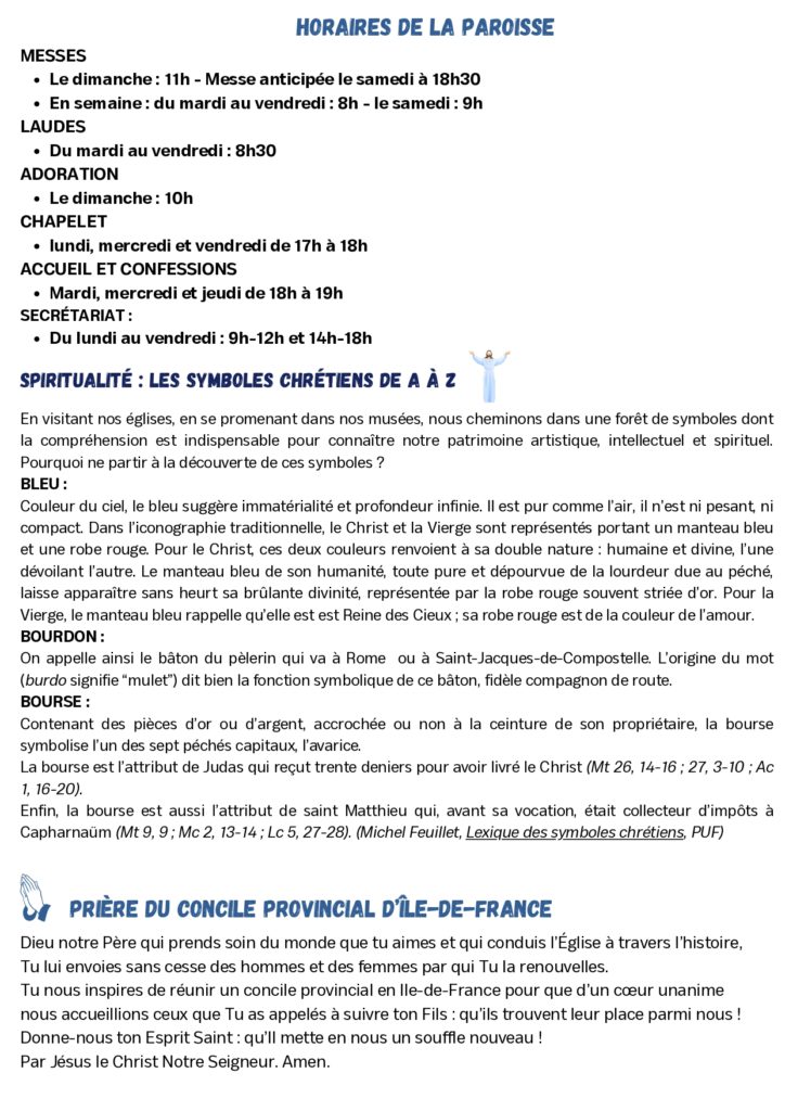 - Adoration du Saint Sacrement de 19h30 à 21h30