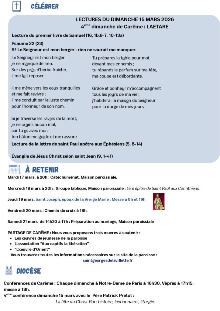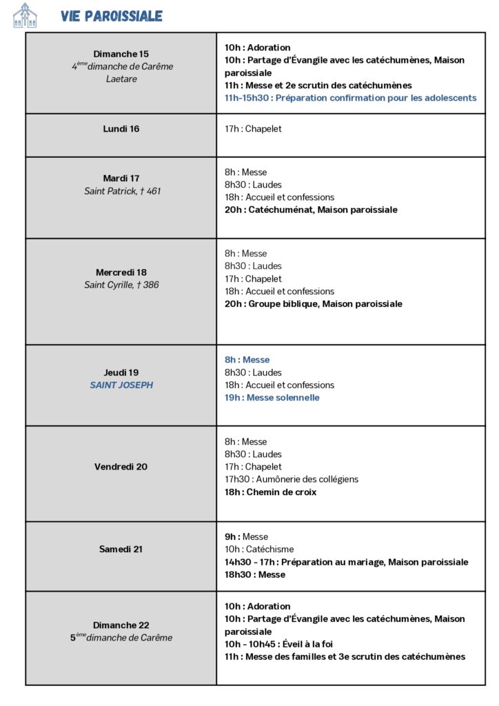 - Jeudi 19 mars : Saint Joseph