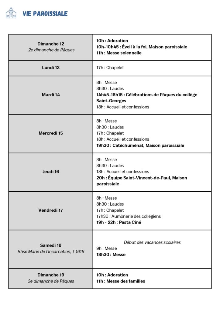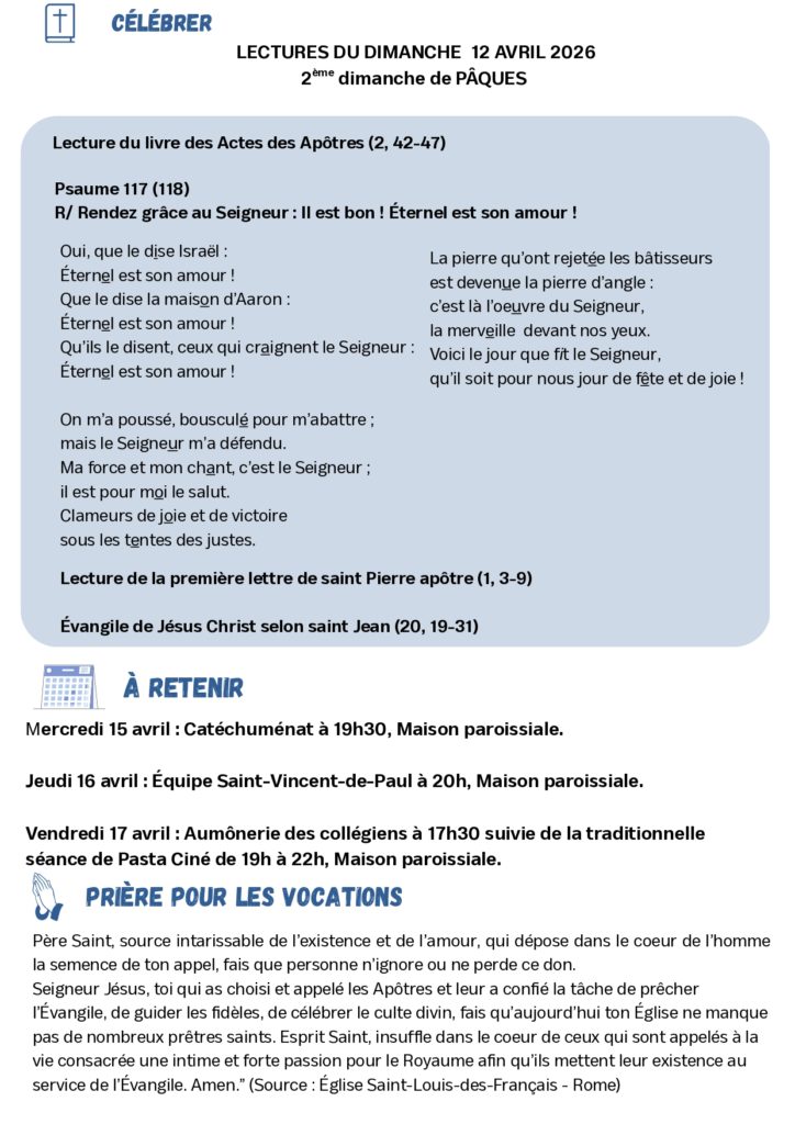 Vendredi 17 avril, pour les jeunes à partir du collège, Pasta-Ciné de 19h à 22h à la maison paroissiale. Vous pouvez vous inscrire ici avant vendredi 17 avril 14h :