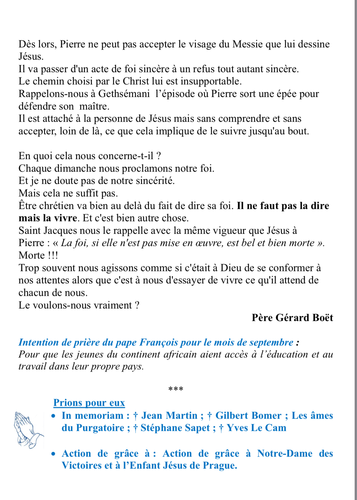 • Aider financièrement la paroisse
