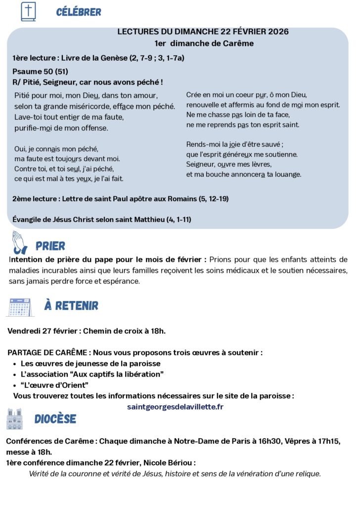 La paroisse vous propose d’effectuer vos offrandes de Carême au profit de trois œuvres :