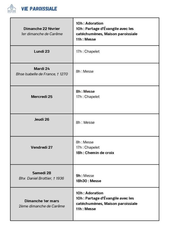 - Mercredi 25 mars : Annonciation du Seigneur