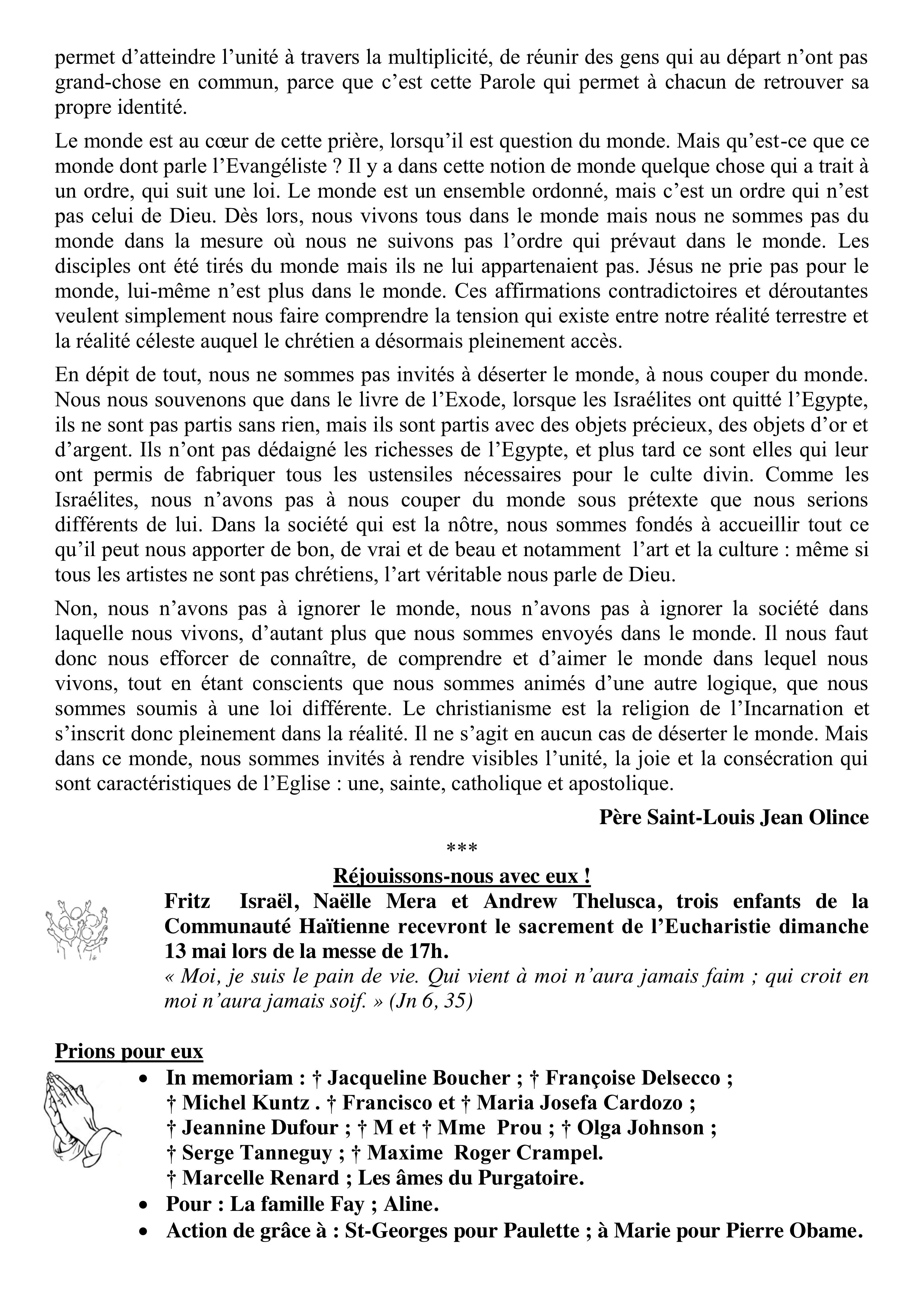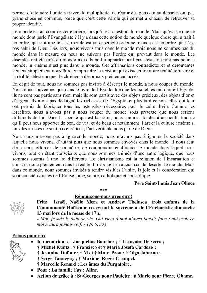 • Aider financièrement la paroisse