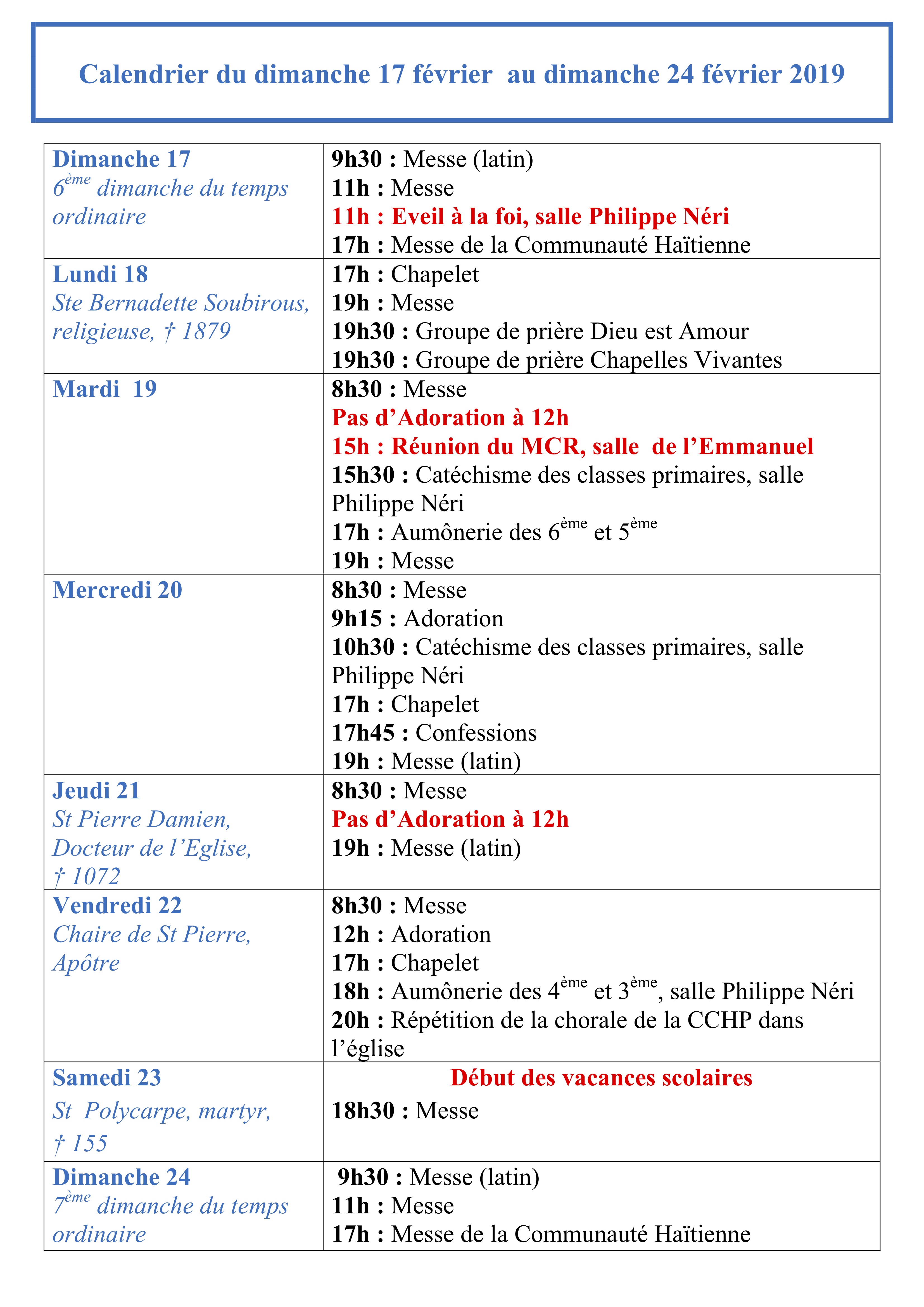 Horaires